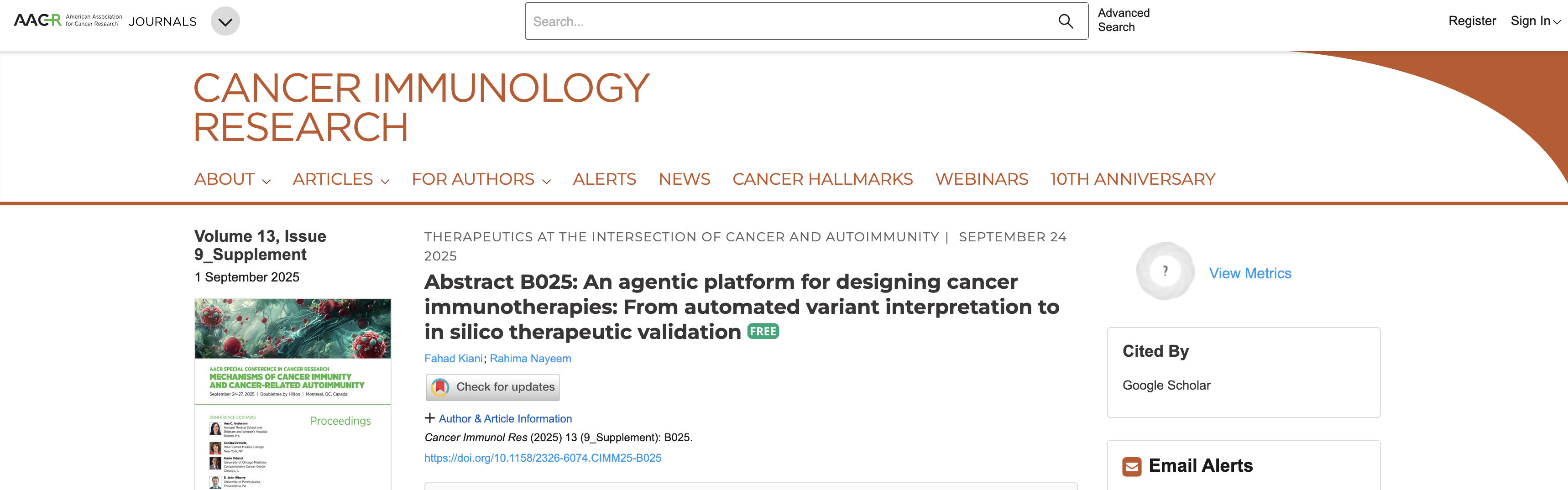 Abstract B025: An agentic platform for designing cancer immunotherapies: From automated variant interpretation to in silico therapeutic validation